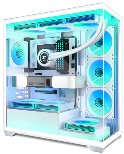 ANSAITE ATX PC Case 7 PWM ARGB Fans Pre-Installed,Mid Tower Computer Case with Full-View Dual Tempered Glass, Type-C Gaming PC Case,White,C09