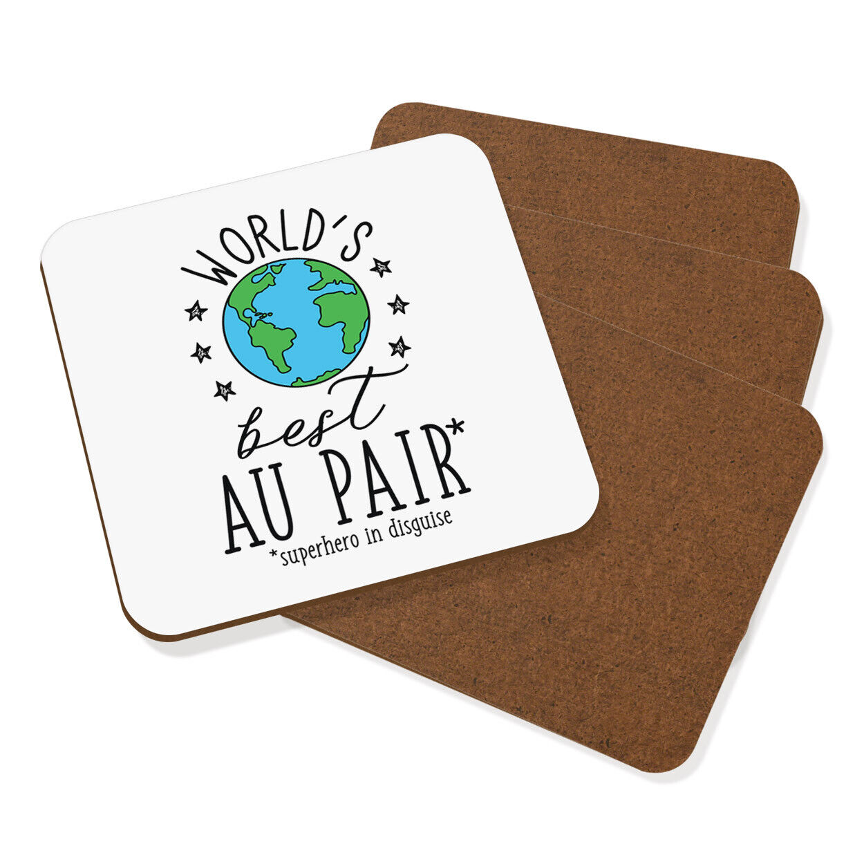 World's Best Au Pair Coaster Drinks Mat Set Of 4 Funny Best Awesome Child Minder