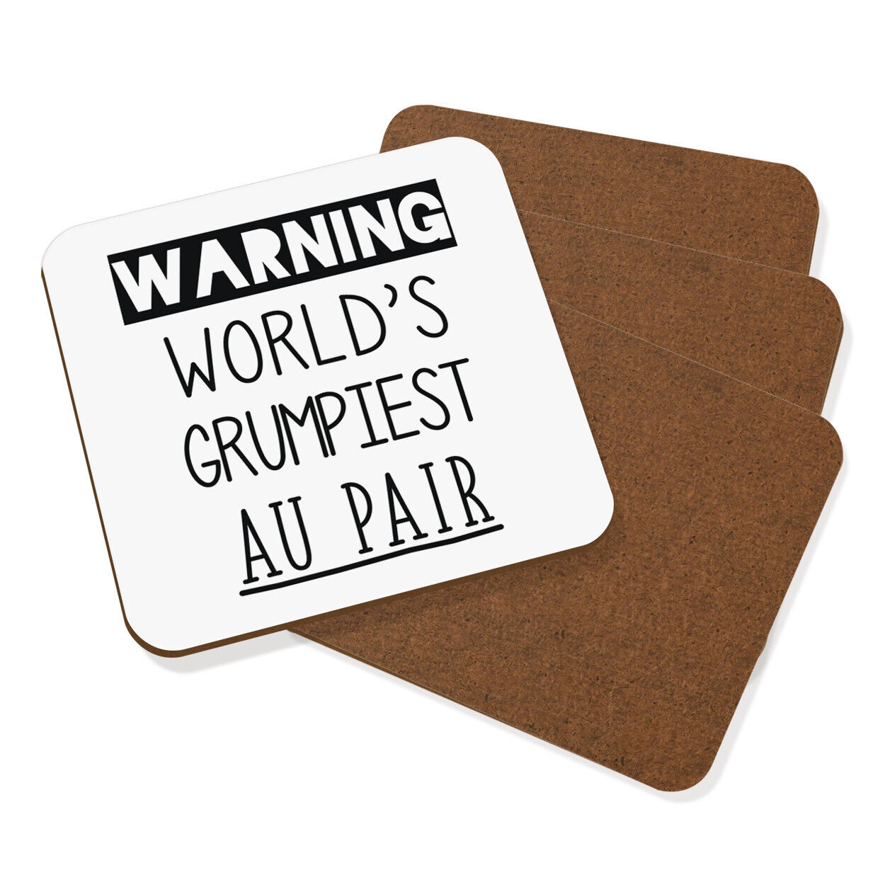 Warning World's Grumpiest Au Pair Coaster Drinks Mat Set Of 4 Best Child Minder