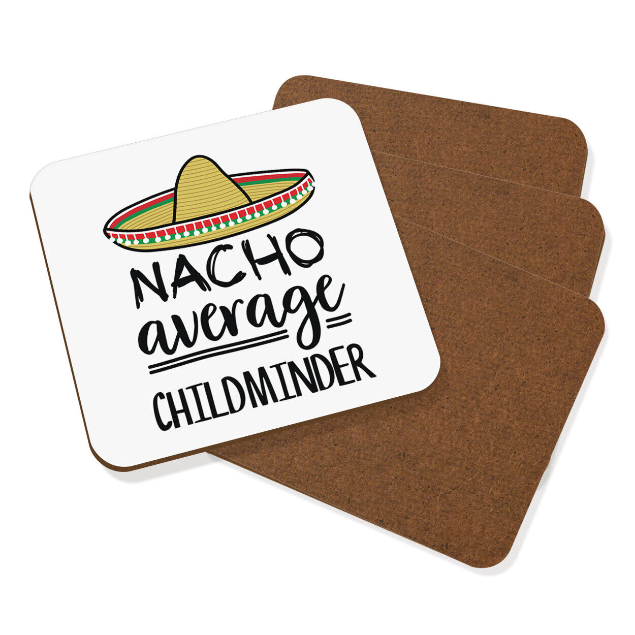 Nacho Average Childminder Coaster Drinks Mat Set Of 4 Funny Joke Best Au Pair