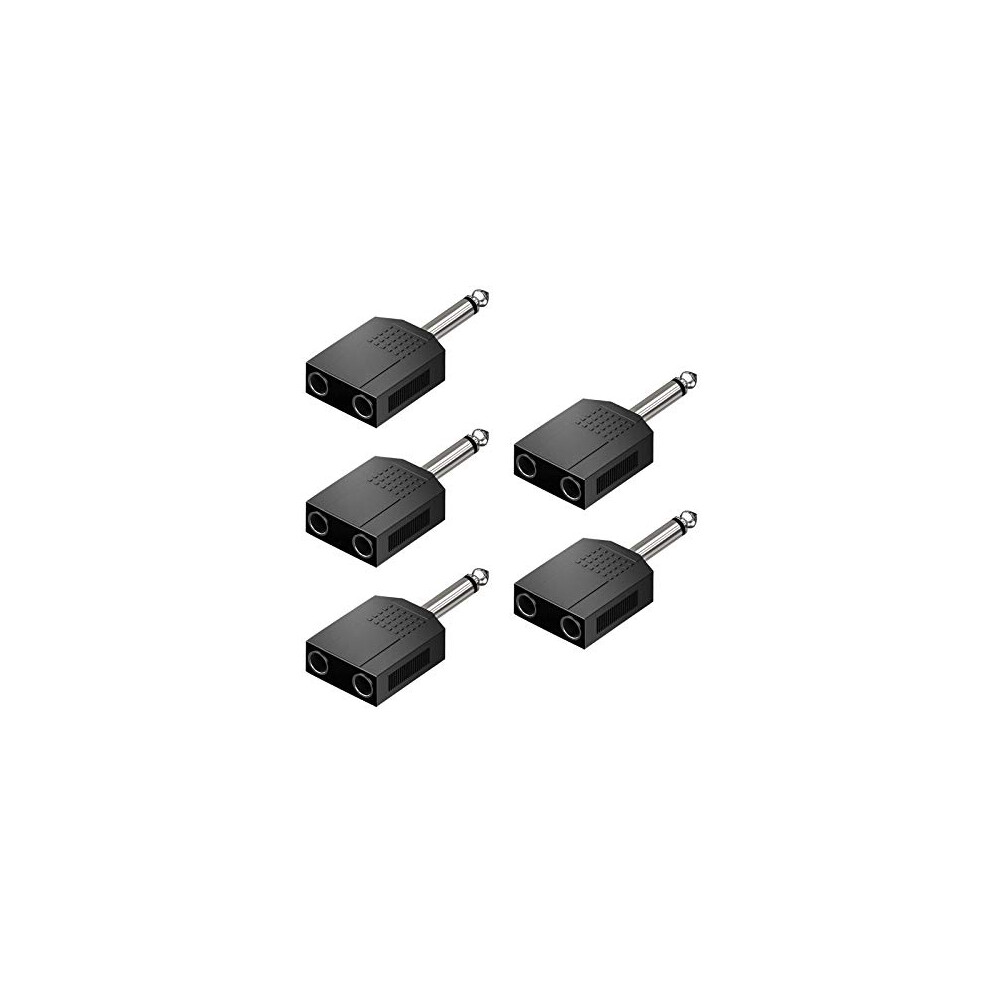 5x 6.35mm 1/4 Inch Stereo 1 Male Plug to 2 Female Sockets Audio Adapter 1/4" Male to Dual Female Jack Audio Y Splitter Converters