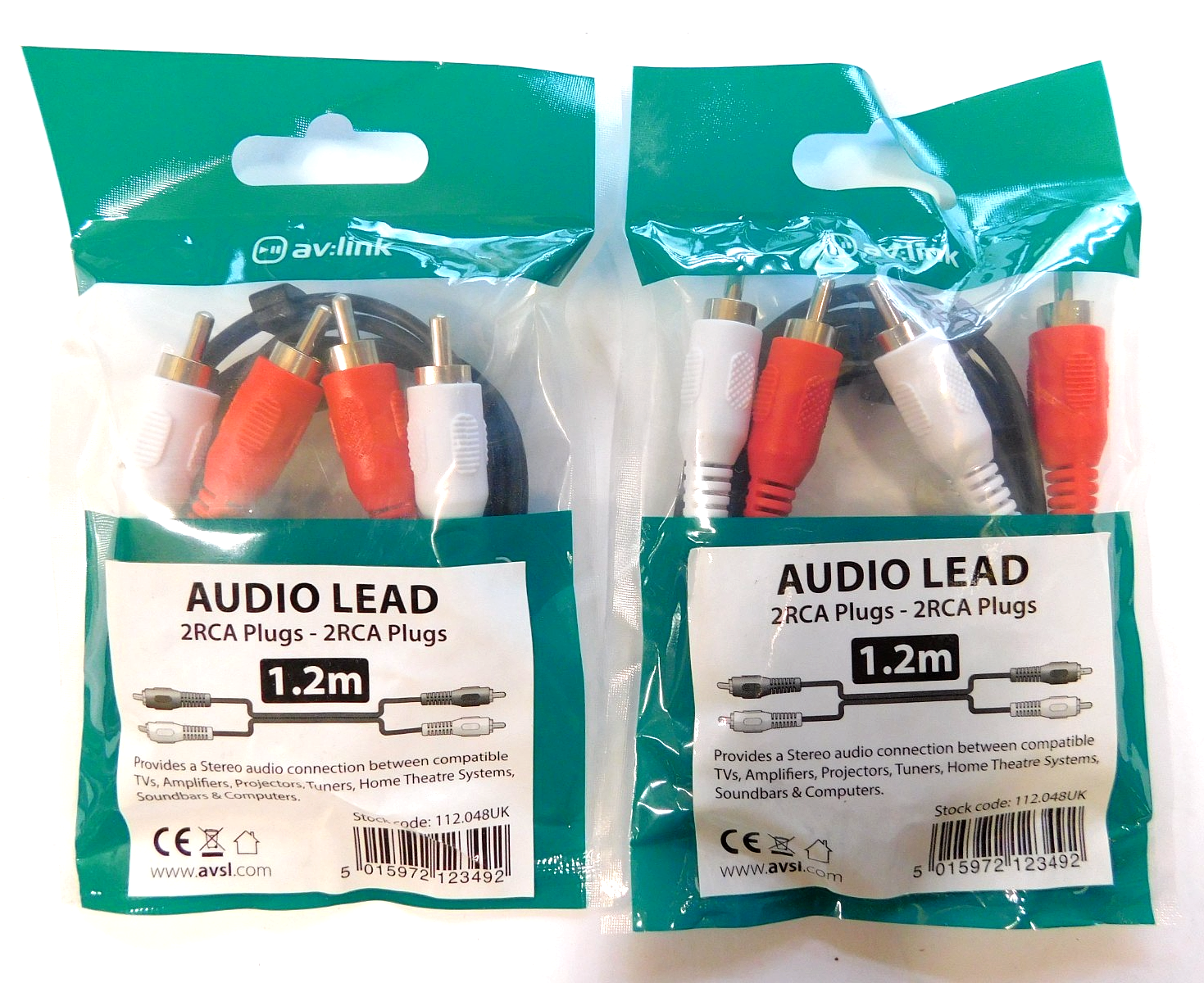 2 x AUDIO LEADS 2 RCA PLUGS - 2 RCA PLUGS - 1.2 METRES