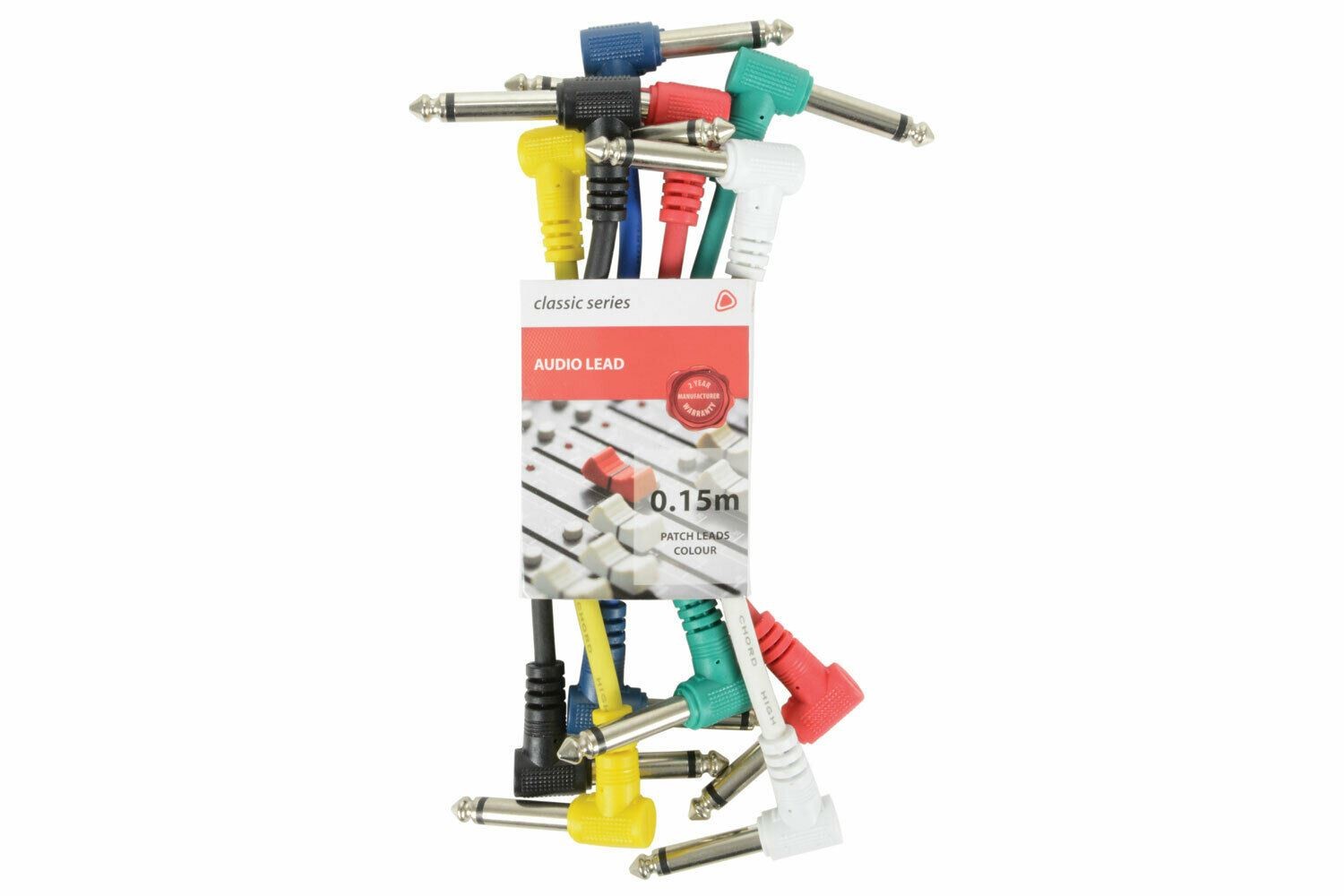 Set Audio Patch Leads Pack of 6 x 50cm Guitar Patch Leads Coloured