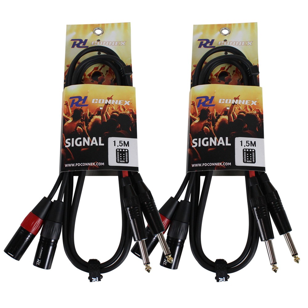 PD Connex 2x XLR Male to 2x 6.35mm Male Jack Cable 1.5m Pair - Audio Leads