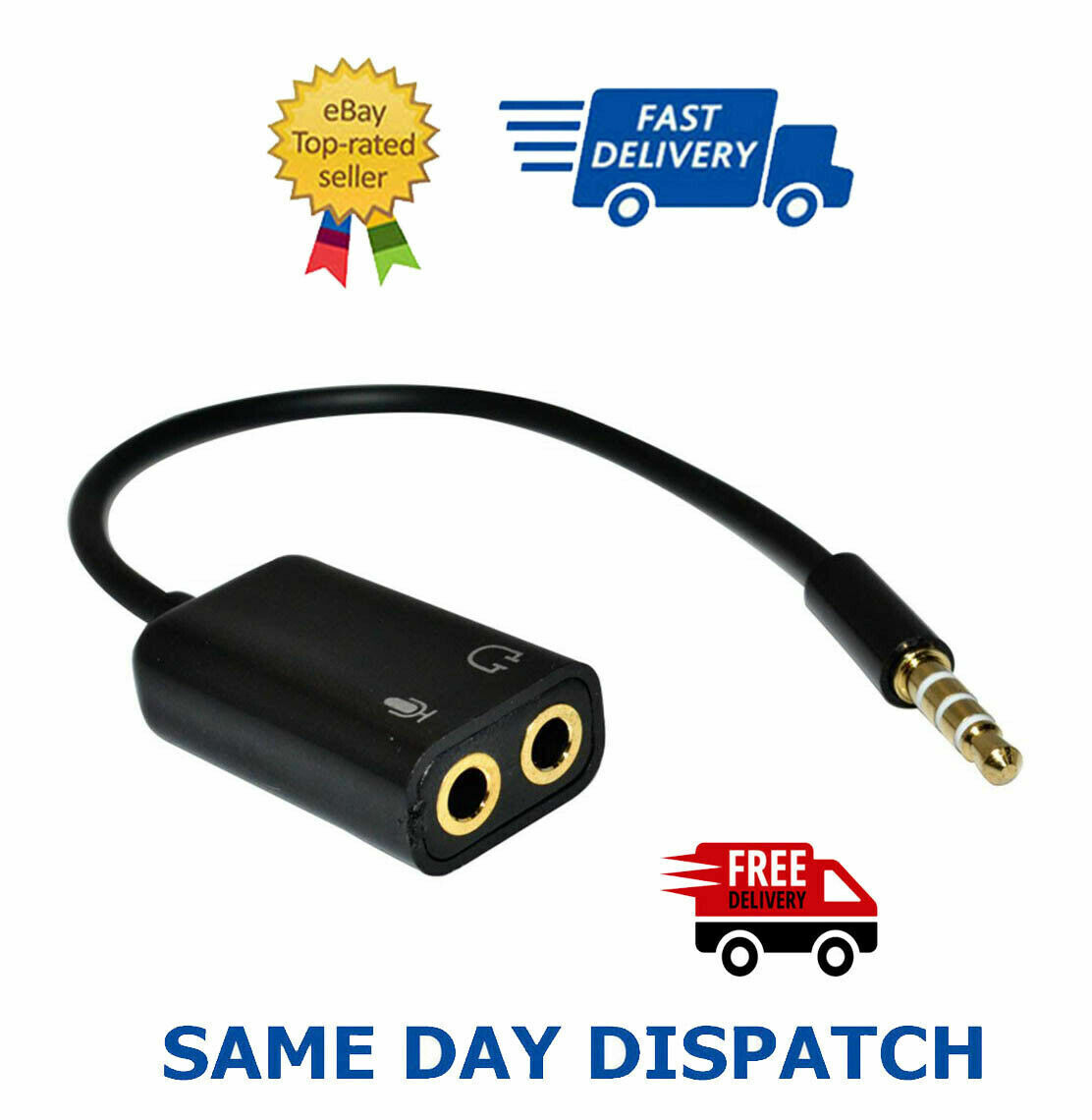 3.5mm Audio Headset Mic Splitter Cable Adapter For Headset Earphone Phone - UK