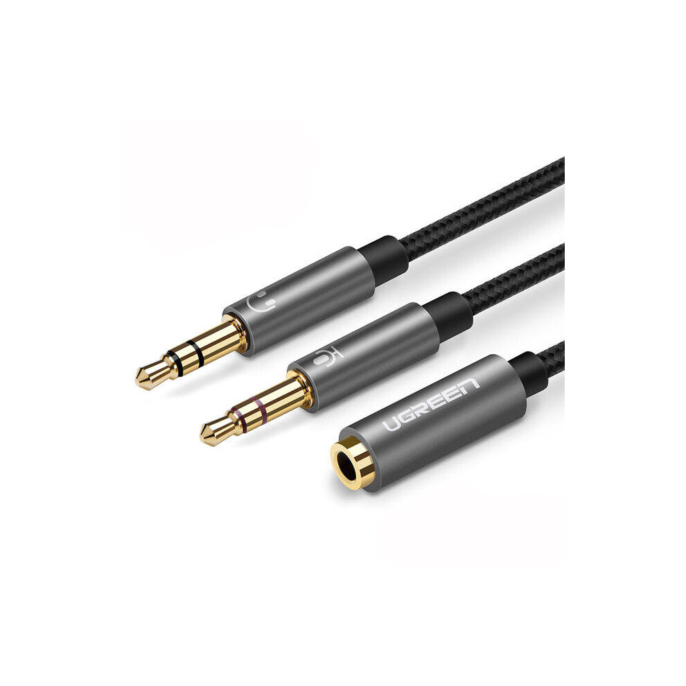Headphone Splitter 3.5mm Female to 2 Male Mic Audio Cable Splitter Cable Headset for PC DARKGREY