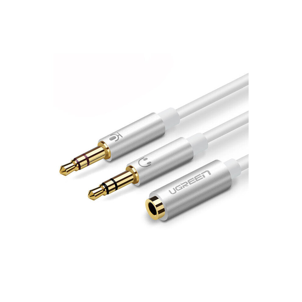 Headphone Splitter 3.5mm Female to 2 Male Mic Audio Cable Splitter Cable Headset for PC SILVERWHITE
