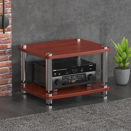 Diodceraic Media Stand 1/2/3/4-Tier Video Audio Rack Solid Wood Columns & Anti-Vibration Metal Feet Entertainment Stand,Rack Audio Tower Stereo Receiver, Turntable & AV Equipment(Red,2 tier)