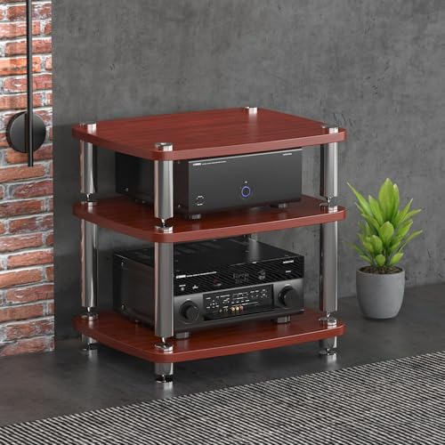 Diodceraic Media Stand 1/2/3/4-Tier Video Audio Rack Solid Wood Columns & Anti-Vibration Metal Feet Entertainment Stand,Rack Audio Tower Stereo Receiver, Turntable & AV Equipment(Red,3 tier)