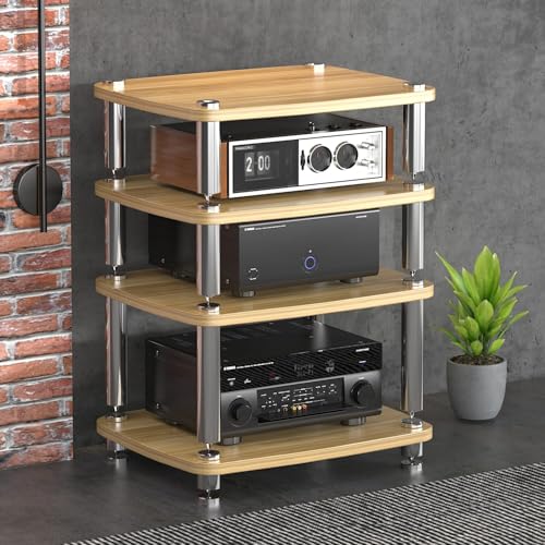 Diodceraic Media Stand 1/2/3/4-Tier Video Audio Rack Solid Wood Columns & Anti-Vibration Metal Feet Entertainment Stand,Rack Audio Tower Stereo Receiver, Turntable & AV Equipment(Natural,4 tier)