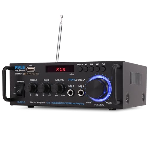 Pyle Wireless Bluetooth Power Amplifier System - 200W Dual Channel Sound Audio Stereo Receiver w/USB, SD, AUX, MIC IN w/Echo, Radio, LCD - For Home Theater Entertainment via RCA, Studio Use - PDA6BU