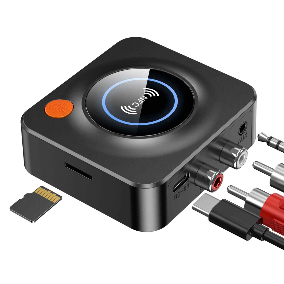 Bluetooth Receiver, Bluetooth Receiver for Hifi, bluetooth audio receiver for speakers, home stereo system with NFC, TF Card Slot, 3.5mm AUX/RCA