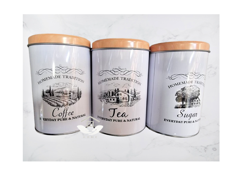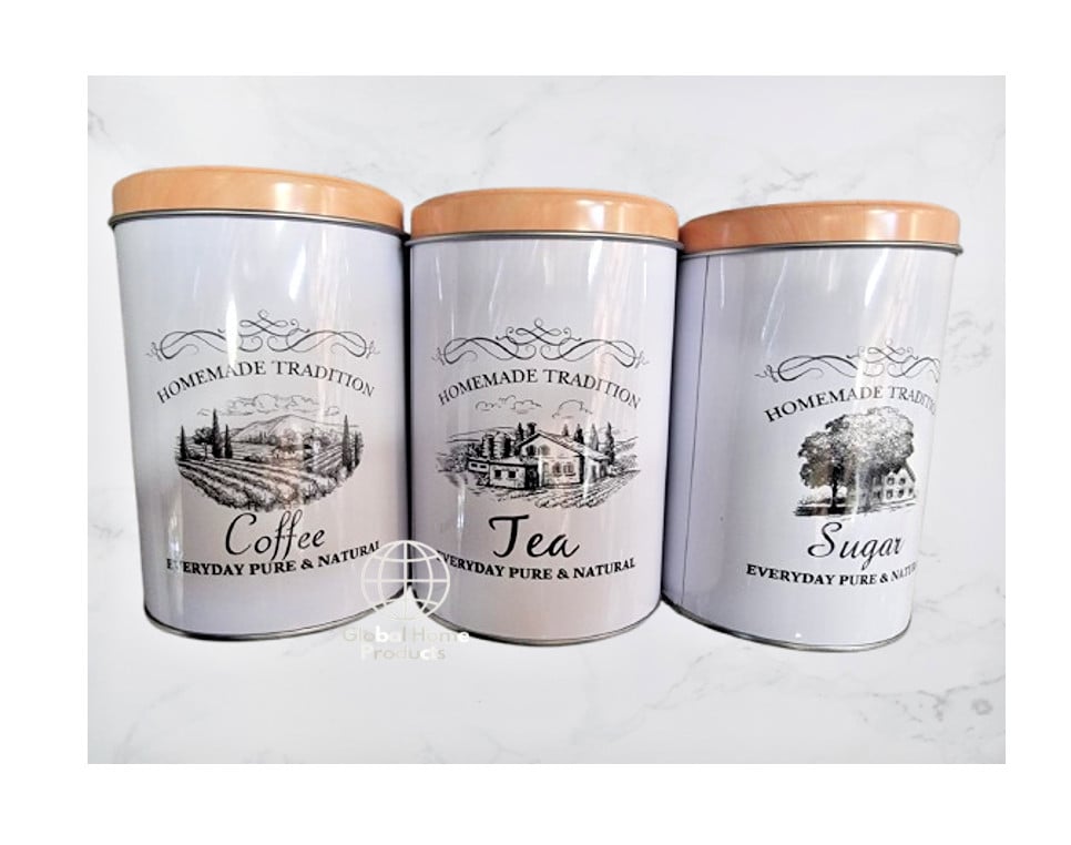 Canisters Jar Set Of 3 Vintage Aura Traditional Round Storage Tin Kitchen Gift