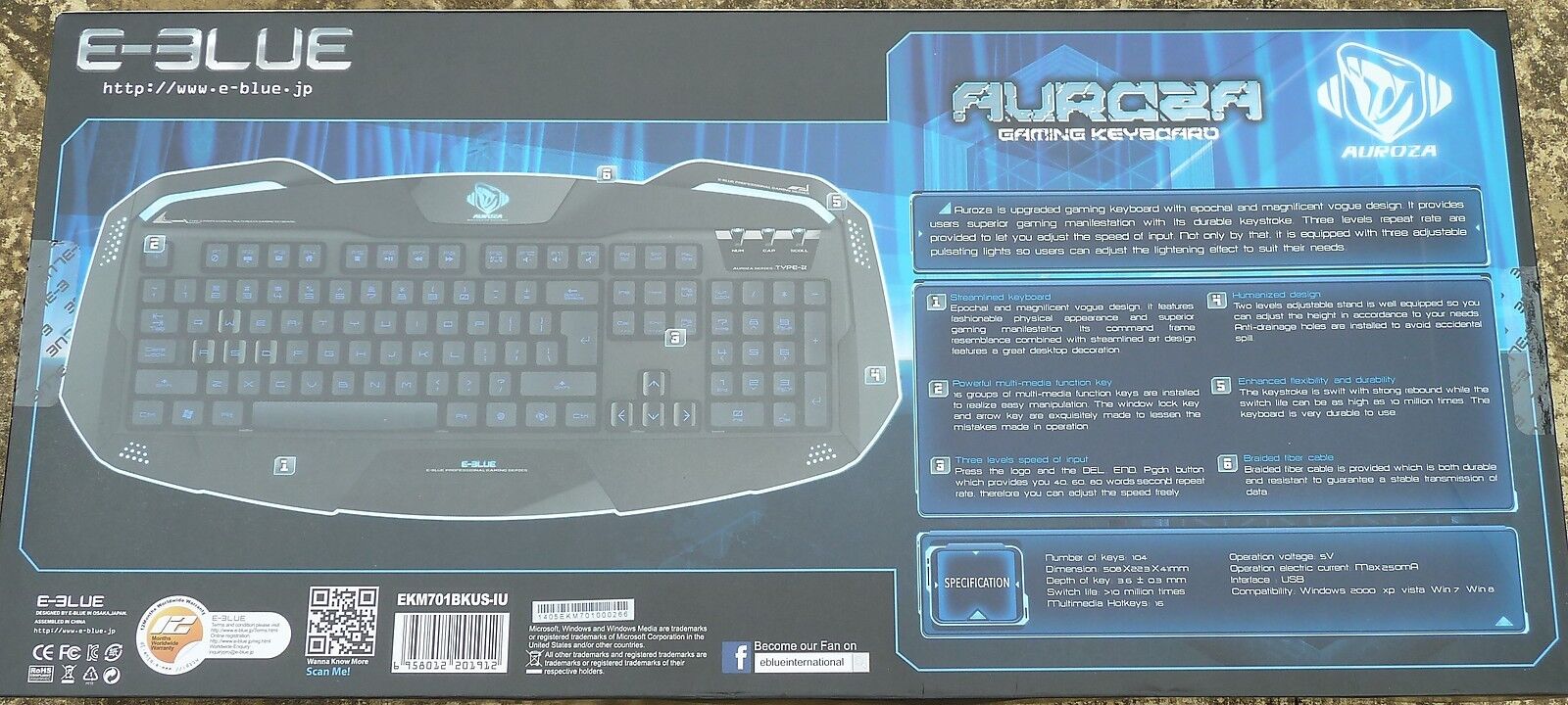 AURORA GAMING WIRED USB UK KEYBOARD BRAND NEW! e-Blue QWERTY 104 Key Repeat Rate
