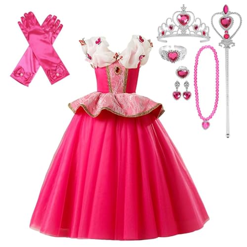 Monissy Girls Aurora Princess Costum Sleeping Beauty Princess Outfits mit Accessories Baby Fancy Dress Up set for Carnival Birthday Ball Gown Christmas Wedding Birthday, Pink, 150