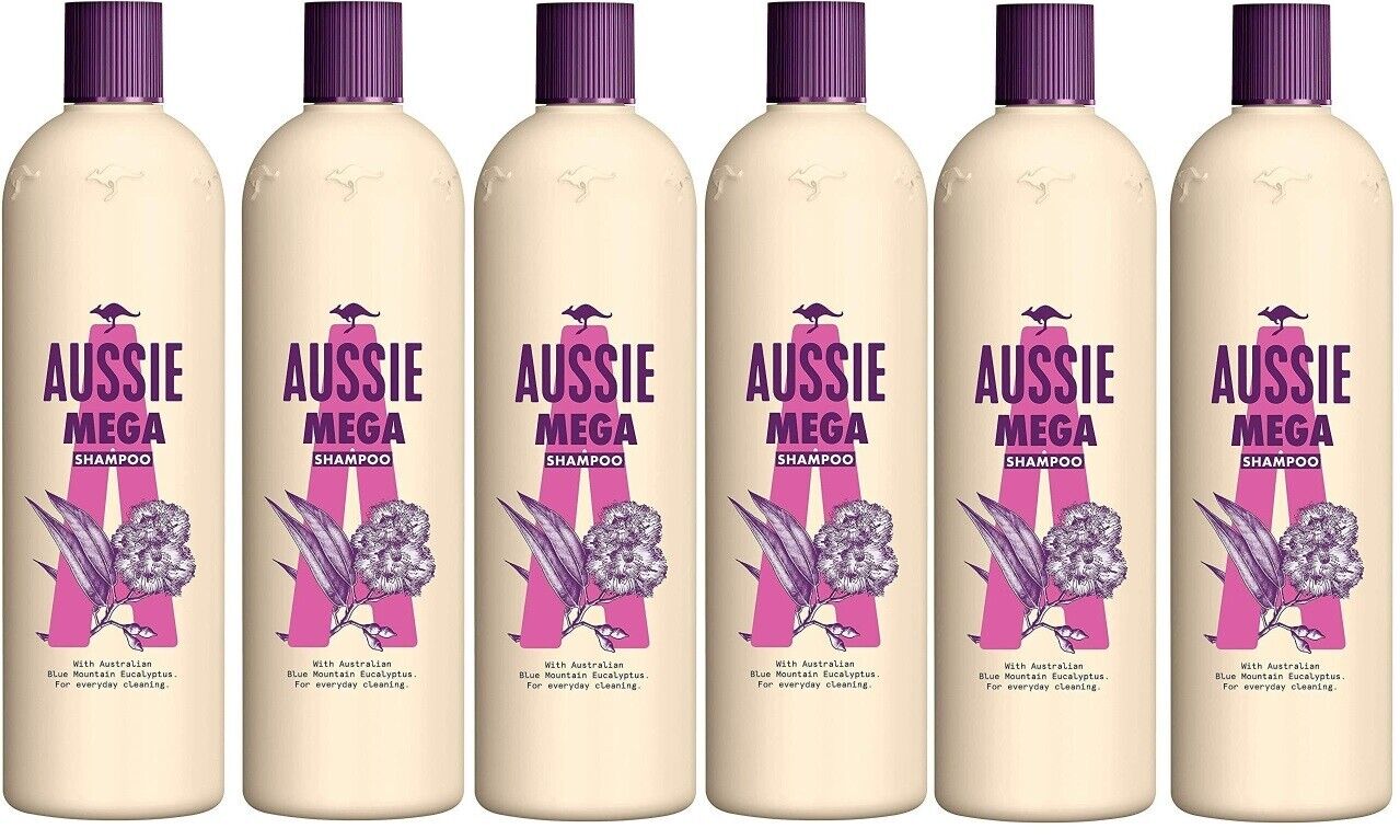 Aussie Mega Shampoo for All Hair Types 6 x 300 ml Pack of 6