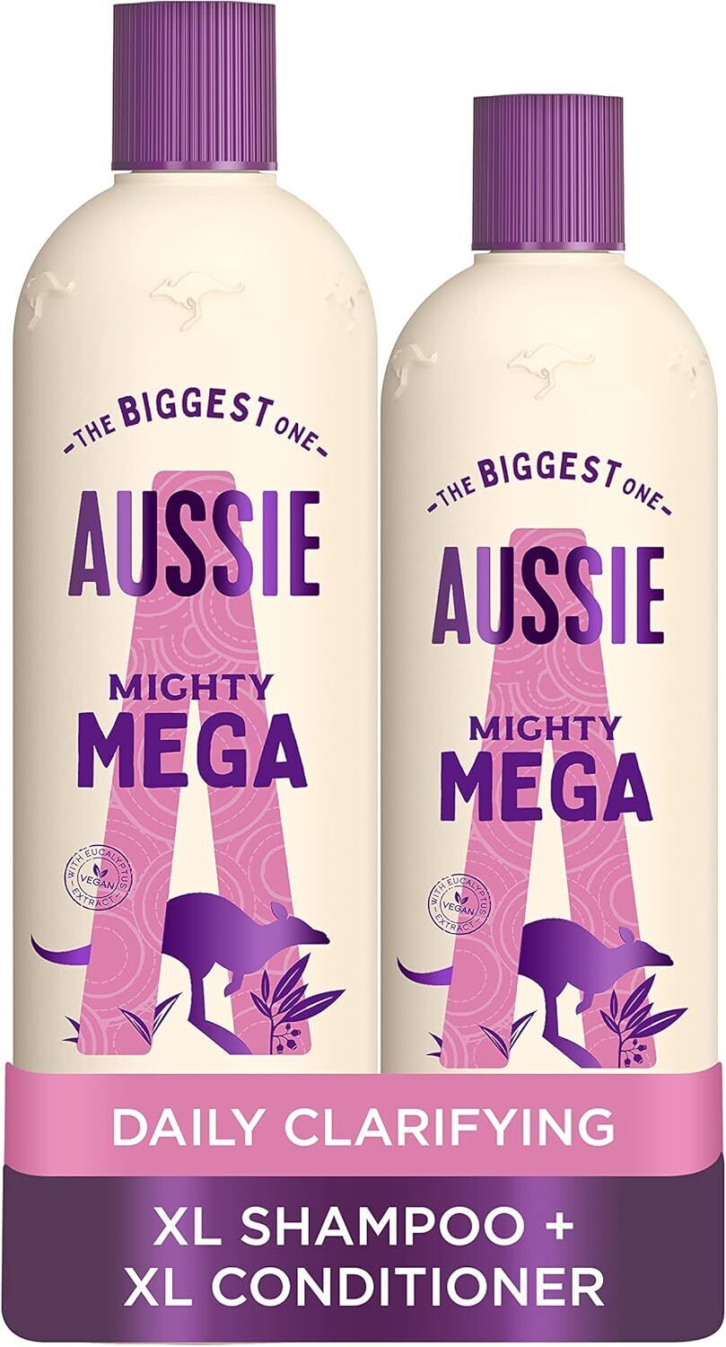 Aussie Mighty Mega Shampoo 675ml & Conditioner 470ml Bundle - Daily Hair Care