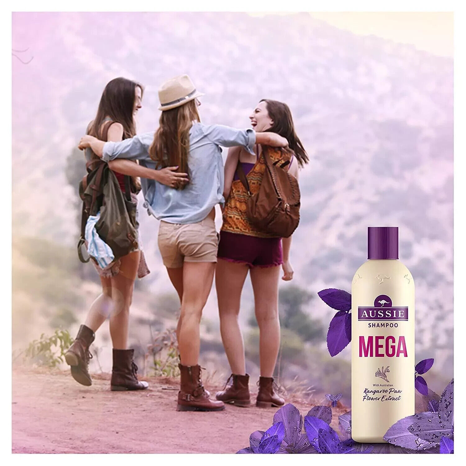 Aussie Mighty Mega Shampoo 400ml. Gently Cleansing Shampoo for Soft and Shiny Hair. Infused with Australian White Strawberry
