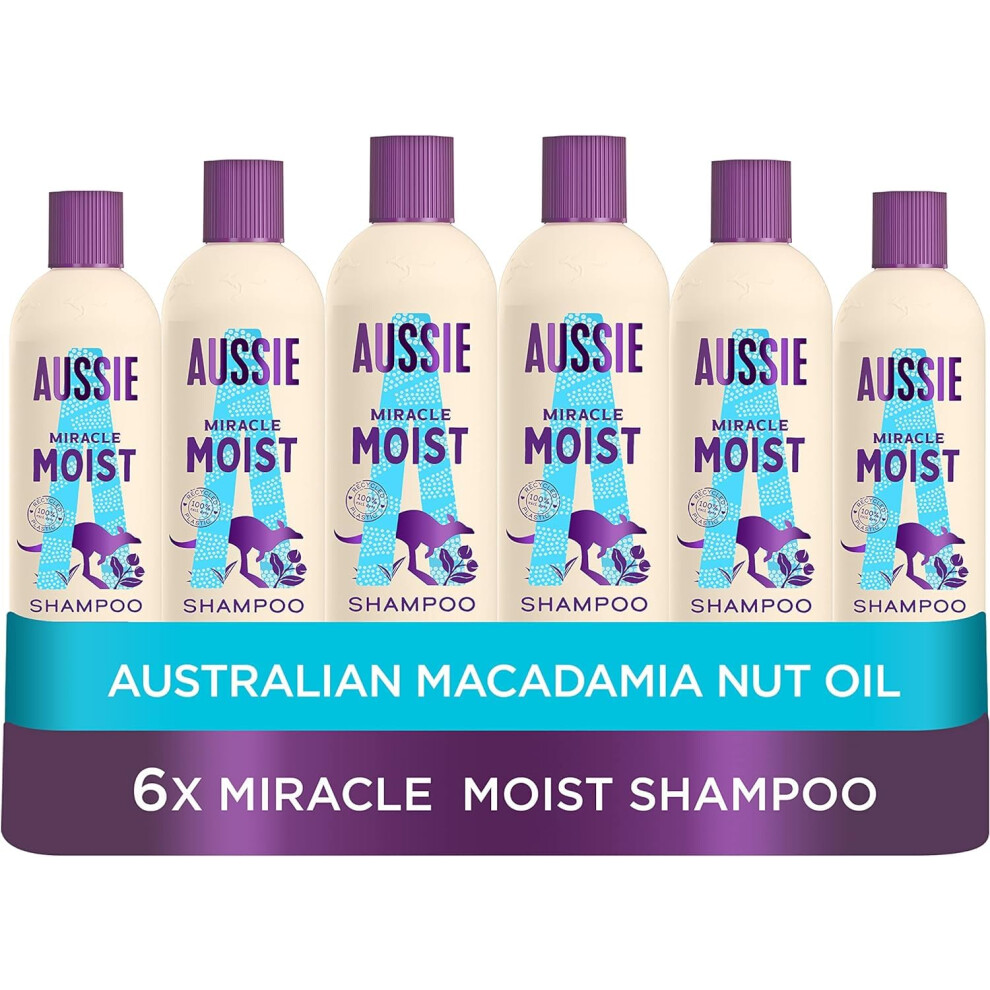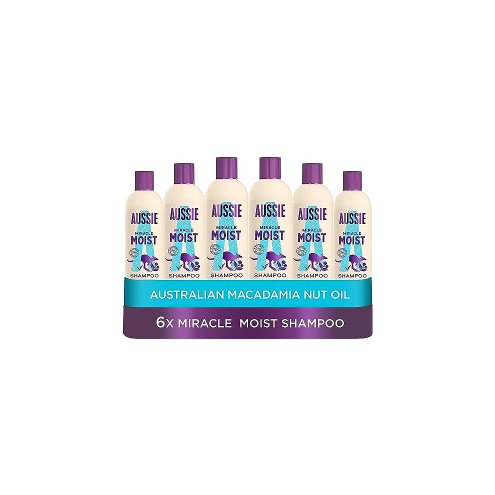 Aussie Miracle Moist Shampoo 300 ml - Pack of 6, Cruelty free