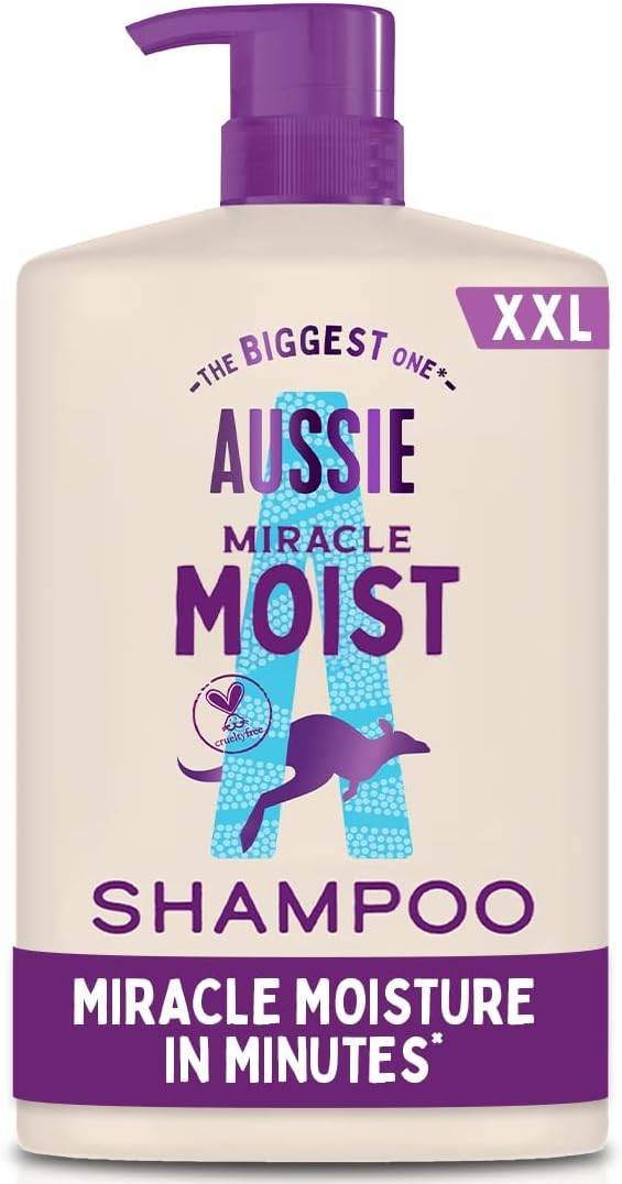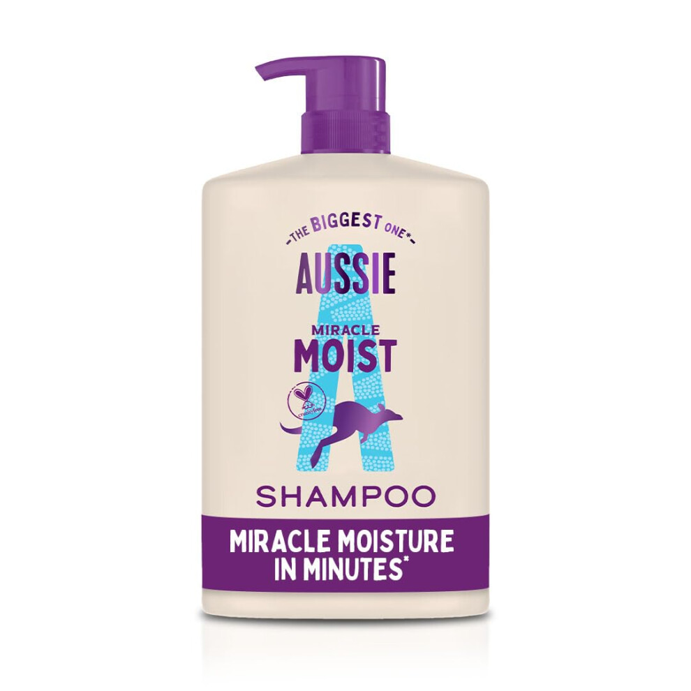 Aussie Miracle Moist Shampoo 1L, XXL Value pack. Moisturizing Formula to Revive & Restore Damaged, Brittle and Dry Hair. With Australian Macadamia Nut Oil, Cruelty-Free