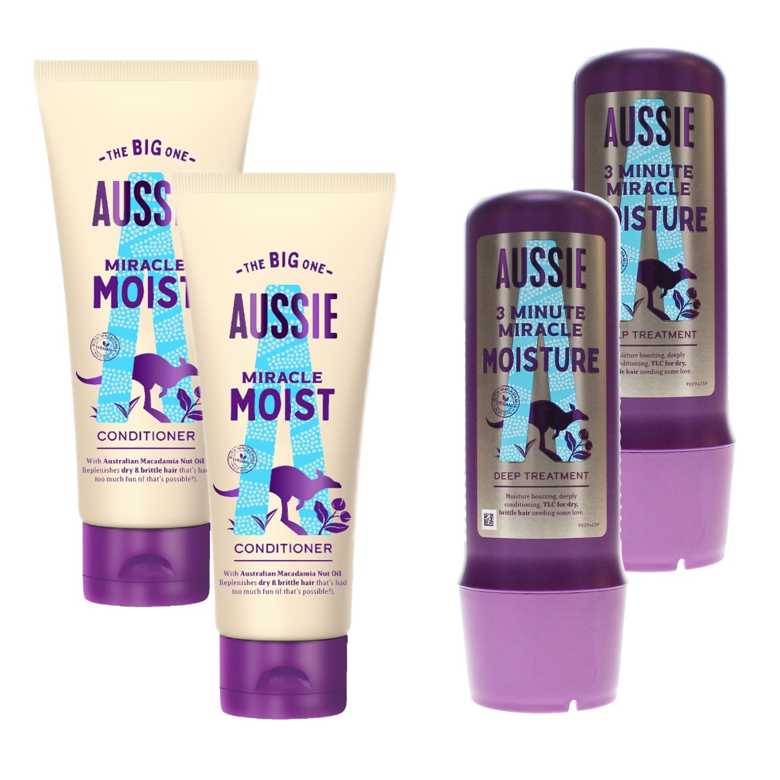 Aussie Miracle Moist XL Shampoo and Hair Conditioner Set for dry, really thirsty hair with Macadamia nut oil, a 750 ml Aussie Moist Shampoo and a 500 ml Moist Hair Conditioner
