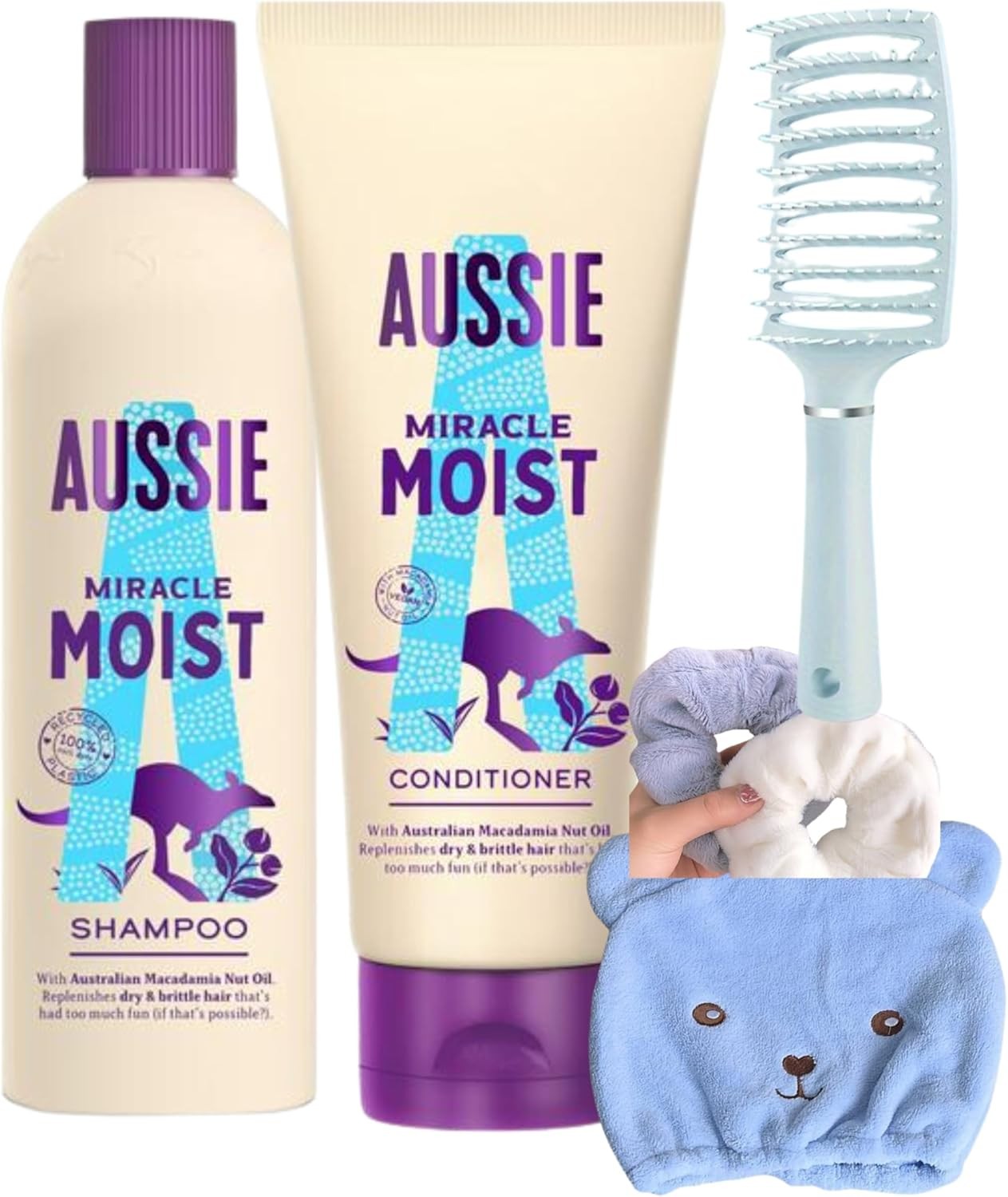 Aussie Miracle Moist Shampoo and Conditioner Set with Macadamia Nut Oil, for Dry