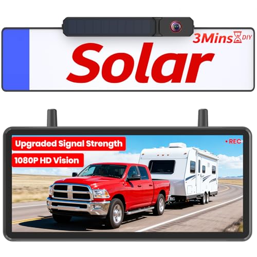 AUTO-VOX Solar Wireless Reversing Camera Kit, 3 Mins Easy Install Reverse Camera with HD Night Vision, Stable Digital Signal, IP69K Waterproof Reversing Camera Wireless for Car, Vans, Motorhome, Truck