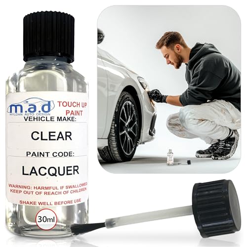 M.A.D MYLDAN AUTO DESIGN M.A.D Clear Lacquer Coat For Car Paint Touch Up Brush Scratch Chip Repair - 30ml Kit, Gloss Finish with Built-in Brush