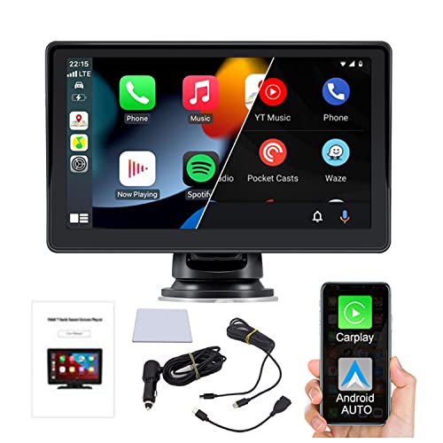 LUOAN AUTO PARTS CP701 Car Stereo Portable Wireless Apple CarPlayer and Android Auto, 7 Inches IPS Touchscreen Car Audio Receiver Support Bluetooth, FM, GPS, Mirror Link