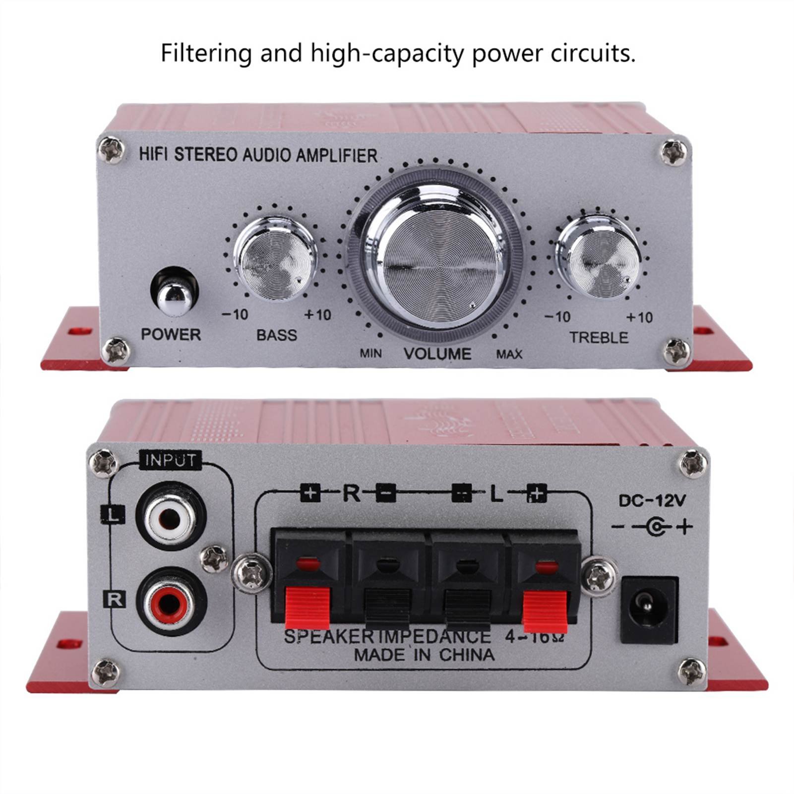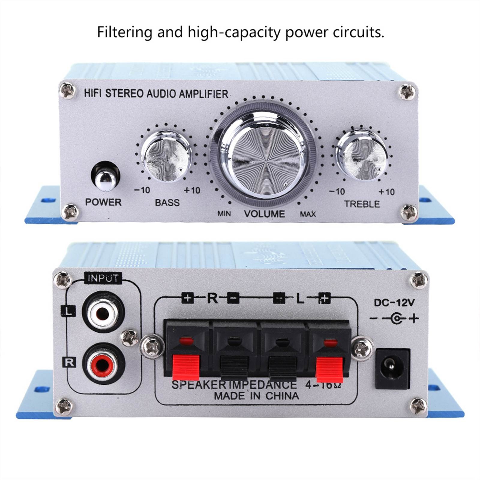 WINGONEER Mini Bluetooth Hi-Fi Stereo Audio AMP Amplifier Bass Booster MP4 12V Support FM/MP3/TF/USB/DVD for Car Motorcycle Car Auto CD DVD