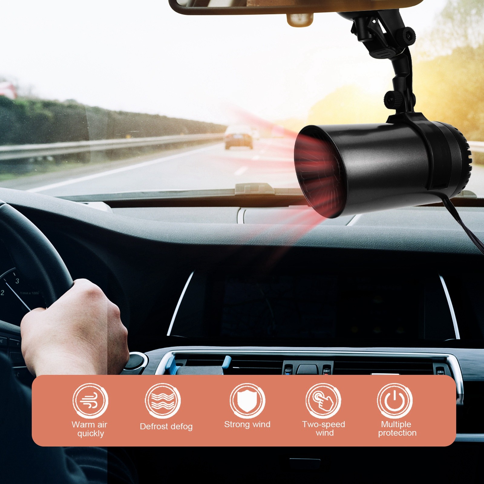 12V 150W Anion Auto Heater Fan Car Windshield Defogger Defroster Demister