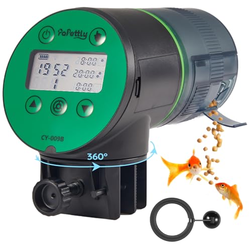 Papettly Automatic Fish Feeder - Auto Food Dispenser for Aquarium, Battery Operated with Timer, Moisture-Proof, Includes 2 AAA Batteries and Fish Feeder Ring