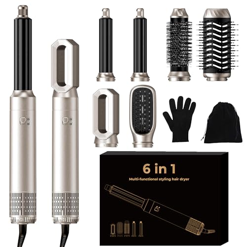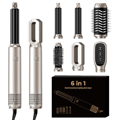 Airbrush Hair Styler, 6 in 1 Hair Styler, Airbrush 6 in 1 with Hair Dryer Brush, Auto Air Curler, Air Brush Hair Styler for Hair Styling, Airstyler for Women Volume, Curl, Smooth and Dry