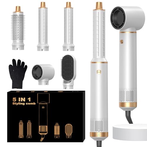 5 in 1 Hair Styler, Airbrush Hair Styler, Airbrush 5 in 1, Airstyler with Ionic Hair Dryer, Auto Air Curler, Hot Air Brush for Dry, Curl, Straighten, Volumise,and Smooth All Hair Type/Length