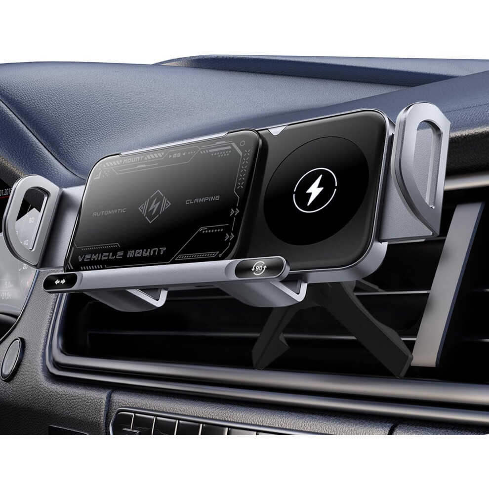 MOKPR Car Phone Holder Wireless Charger, 15W Wireless Car Charger, Auto-Clamping Car Phone Holder Charger Air Vent Mount Compatible for iPhone 17/16/15/14/13/12, Samsung S25/S24/S23