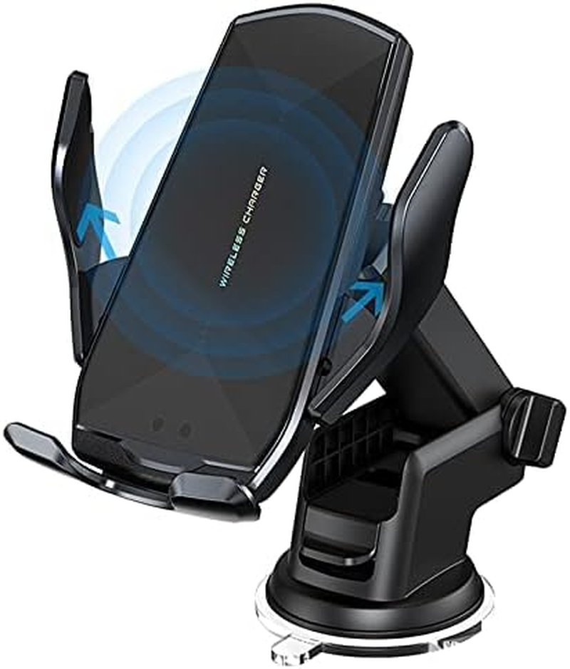 Wireless Car Charger Mount, 15W Qi Fast Charging Auto-Clamping Cell Phone Car Holder Air Vent Windshield Dashboard Long Arm Suction Cup Car Phone Mount