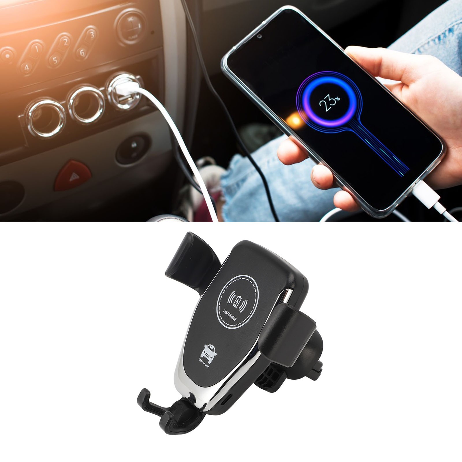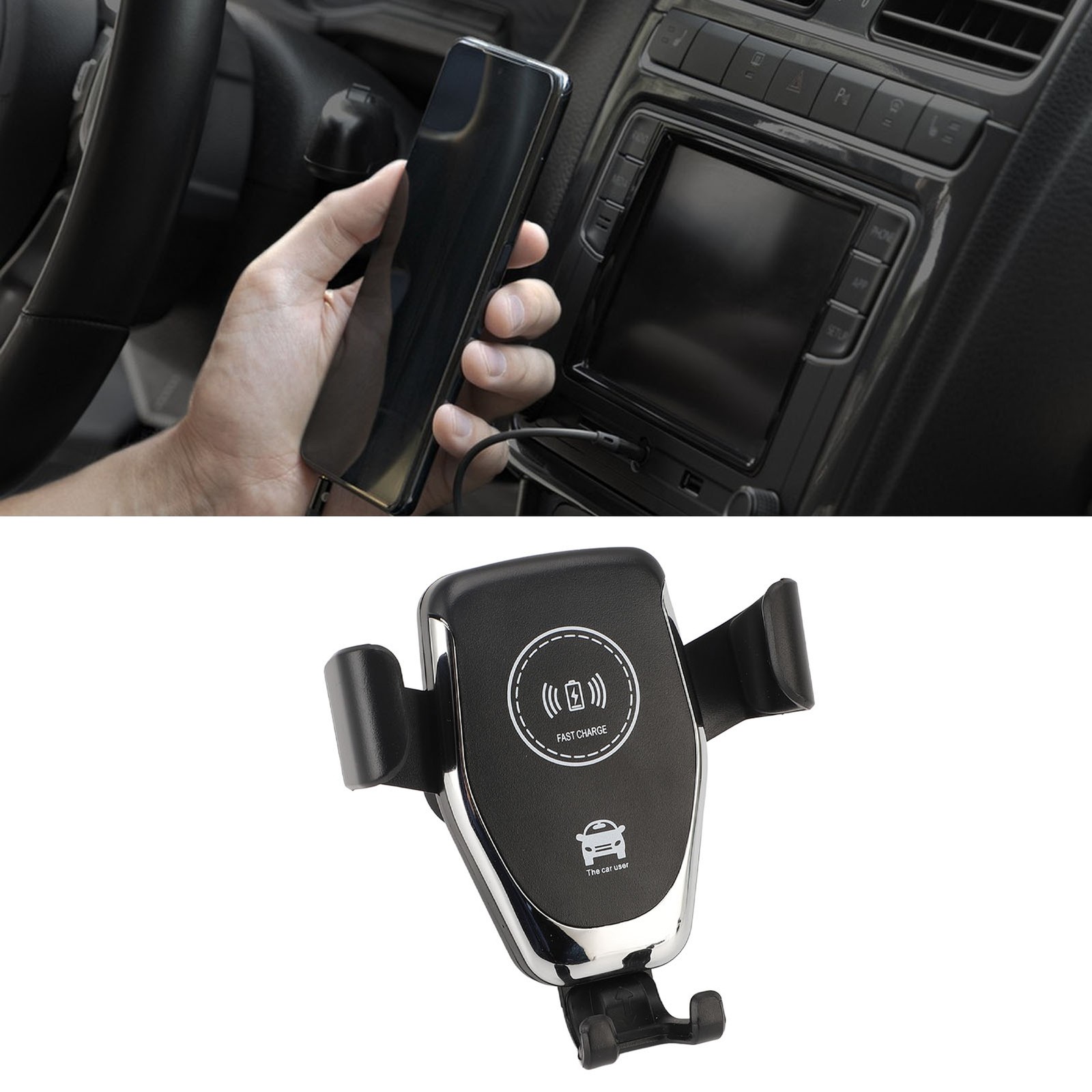 Wireless car charger phone holder 15W Qi fast charging vent mount auto clamp