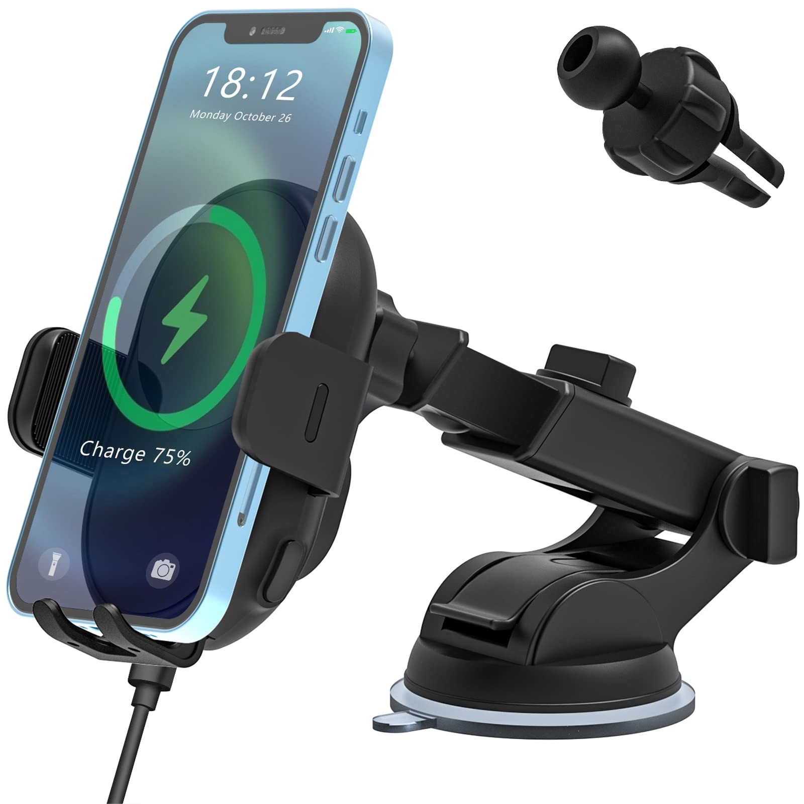 MOKPR Car Phone Holder Wireless Charger, 15W Wireless Car Charger Auto Clamping, Car Phone Holder for Air Vent/Dash/Windshield for iPhone 17/16/15/14/13/12&Samsung S26/S25/S24/S23/S22(Black)