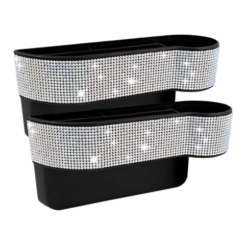 Simply Auto Shining Rhinestones Car Seat Organisers, Bling Crystal Diamond Sparkly Glitter Multi-Compartment Storage, Silver, Front Seat Back Mount, Universal Fit, Set of 2