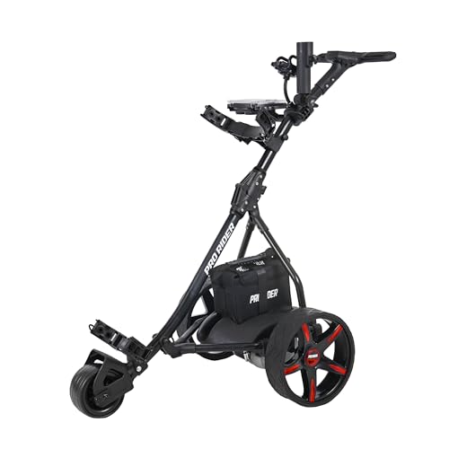 Prorider Electric Golf Trolley Lead Acid 36 Hole Battery Auto Distance Mode 9 Different Speeds Powerful 200W Motor Extra Grip Tubeless Rubberised Tread Tyres and Removable Wheels Accessories Included