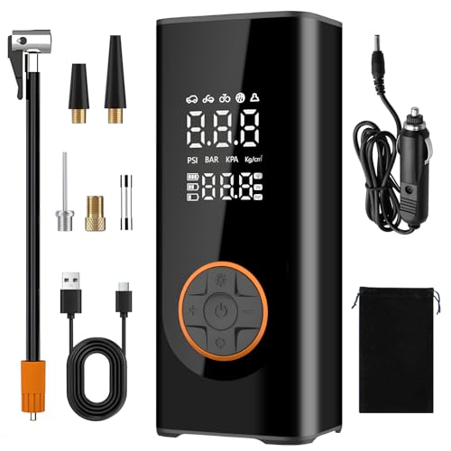 ZETHORS Cordless Tyre Inflator Electric Bike Pump 150 PSI Auto-Off Heavy Duty Portable Air Compressors with LED Light, 6000mAh Battery Rechargeable Air Pump for Cars Bicycles Motorcycles Tyres Balls