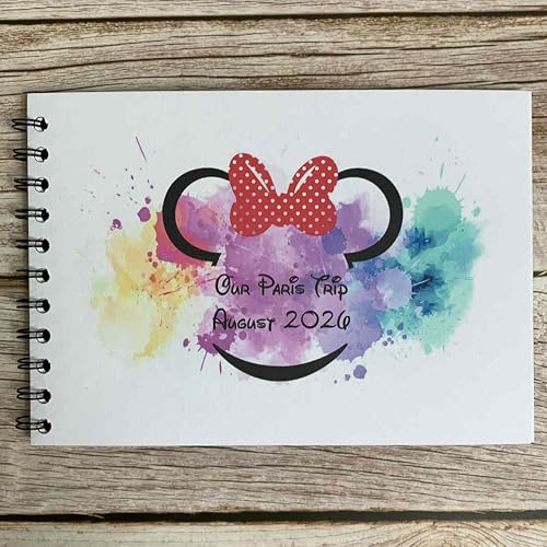 Personalised Splash Autograph Book, Land, World, Cruise, A5 Size, White Pages, Mouse Head Shape, Red Bow, Girl and Boy, Character Shape, Colourful (Mouse Bow Head)