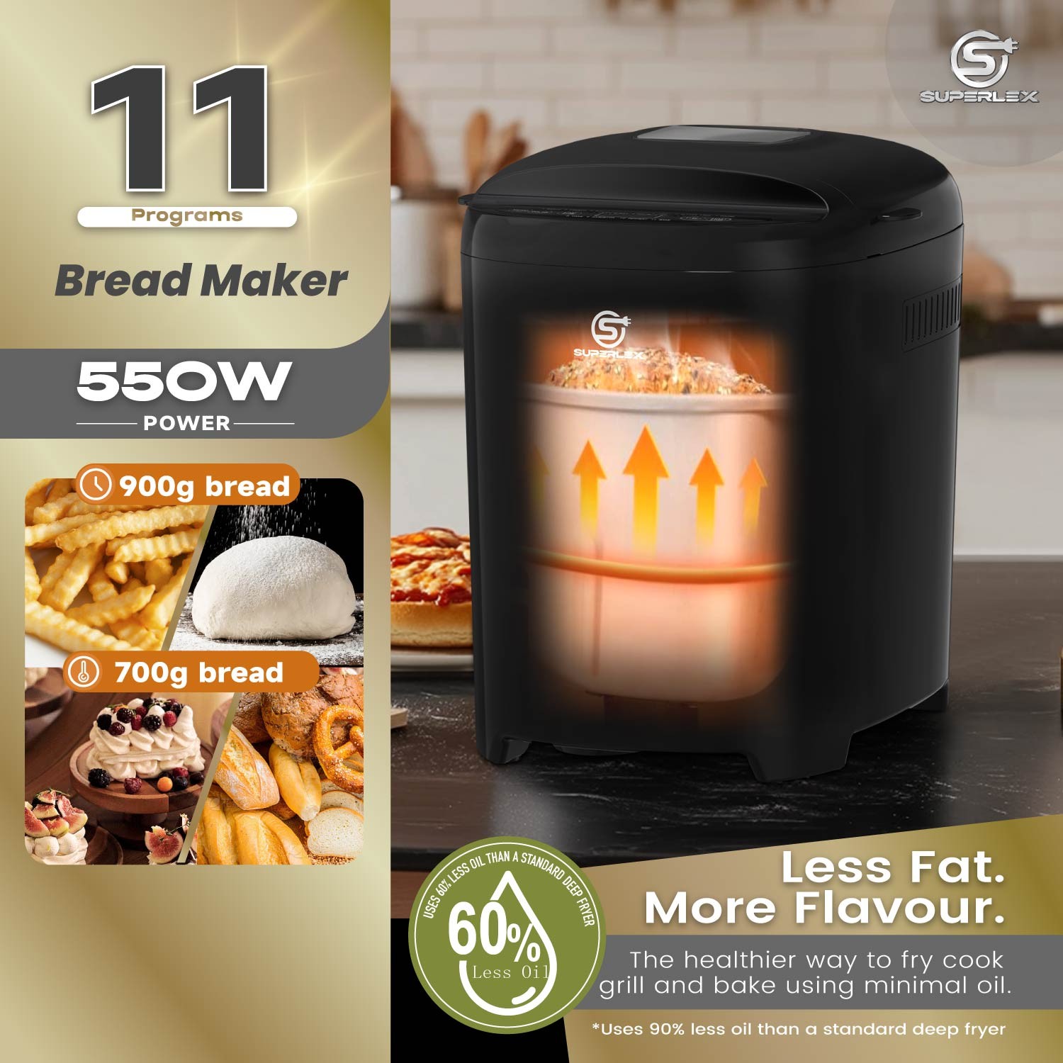SUPERLEX 11-in-1 Automatic Bread Maker Bread Machine 3 Loaf Size Easy Release