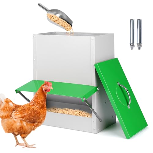 Automatic Chicken Feeders 25lb Metal Poultry Feeder with Lid Large Chicken Coop Feeders Hanging Chicken Feeder Trough for Quail Chickens Ducks