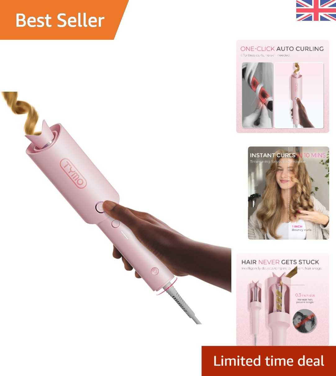 TYMO CURLPRO Automatic Rotating Curling Iron - Beach Waves Curling Wand, Portable Hair Curler, 500 Million Ionic, Dual Voltage & Lightweight for Travel, Ceramic Coating, Pink 1.25 inch