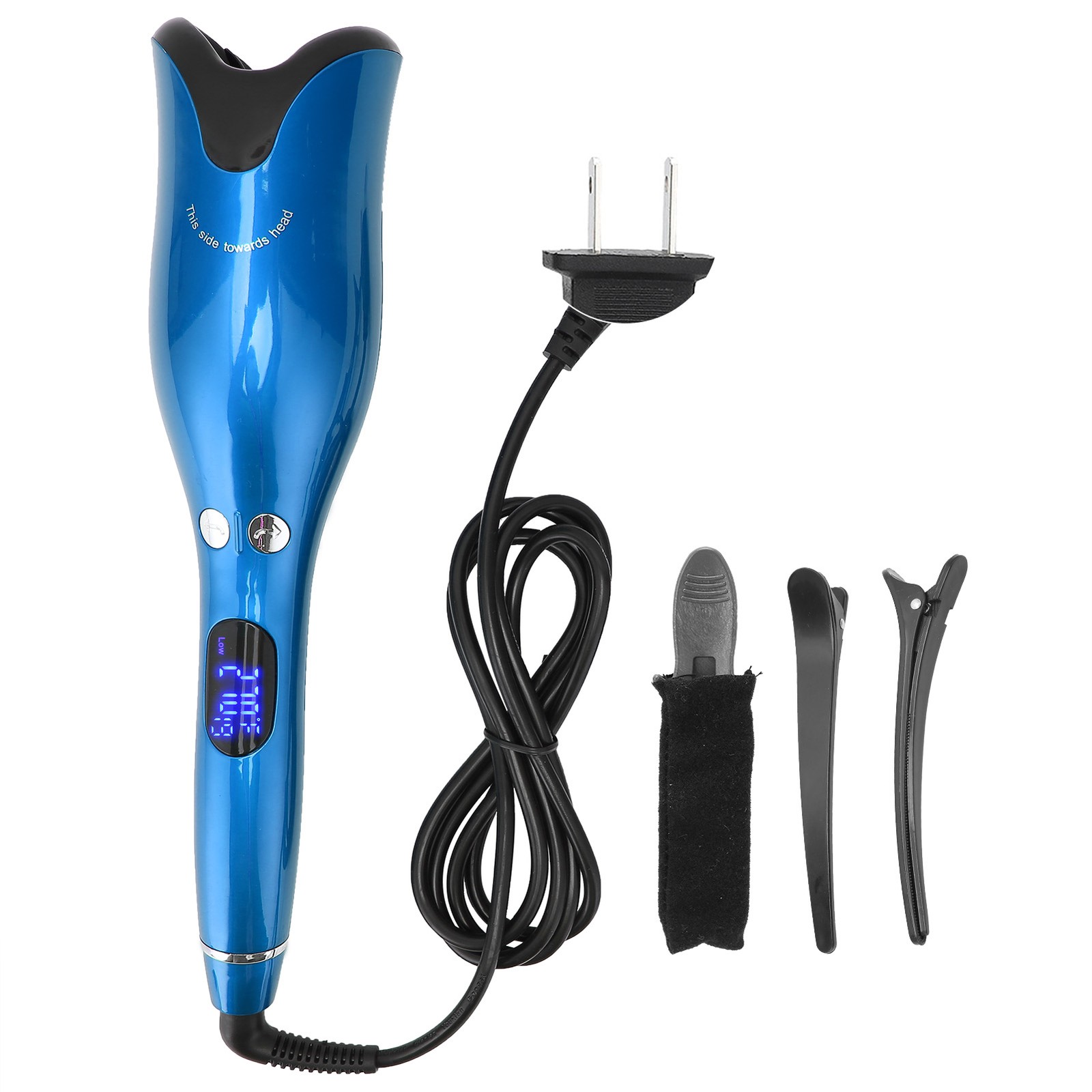 Automatic Curling Iron Wand LED Temperature Display Timer Blue Curling Iron TOU