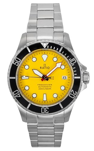 RATIO FreeDiver Sapphire Crystal Diver Watch Japanese Automatic Dive Watch 200m Water Resistant Diving Watch for Men (Yellow)
