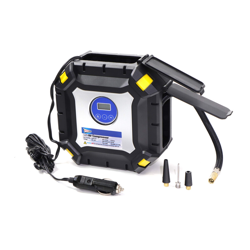 Streetwize - Automatic Cut Off Air Compressor with a Light - 12V - Tyre Inflator, Digital Pressure Gauge (SWAC19)