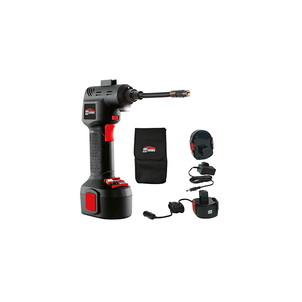 Air Hawk MAX - Rechargeable Air Compressor, Tyre Inflator, Automatic Pump with Five Different Nozzles Compact, Digital, Cordless with LED Light (As seen on High Street TV)