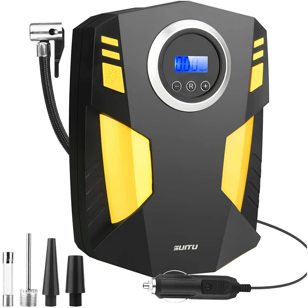 BAITAI Car Tyre Inflator, 12V Digital Tyre Pump Air Compressor, 150PSI Automatic Air Pump with 3 Nozzle Adaptors,LED Light and Auto Shut Off for Car,B
